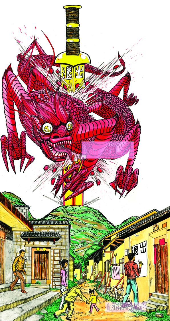 The piece will accompany a poem called ‘The red dragon slayer’, which is about a young man who decides to quit the Chinese Communist Party, and in so doing, wounds the CCP represented by a deadly red dragon.
