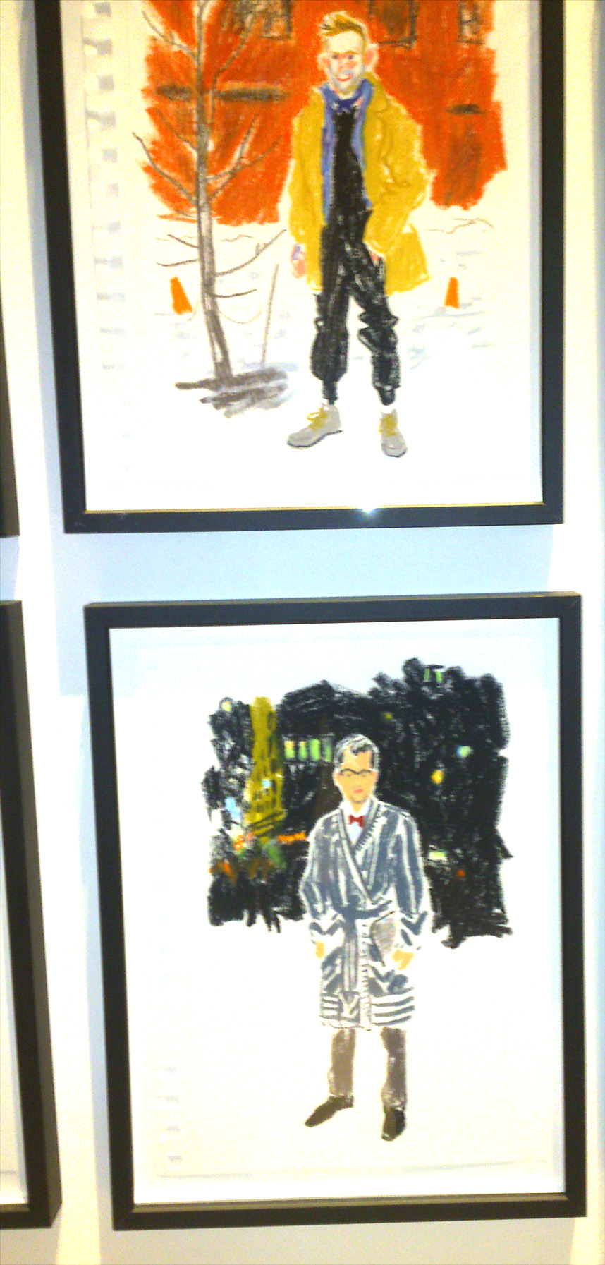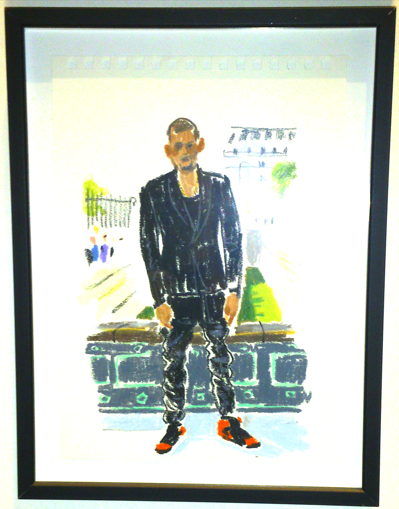 His style is to capture the essence of people by drawing quick sketches using simple Crayola crayons.