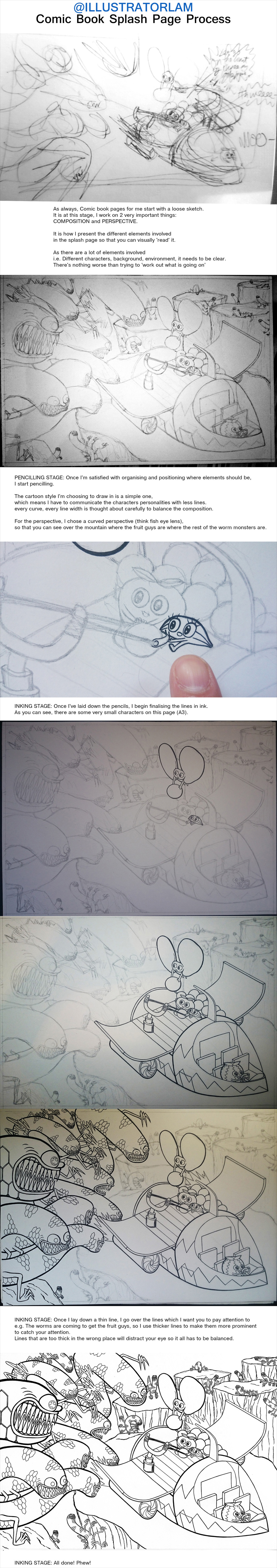 For now… you can take a look at the behind the scenes process of how I produced the main image for this blog post, from sketching, to pencilling to inking and finally the colouring…
